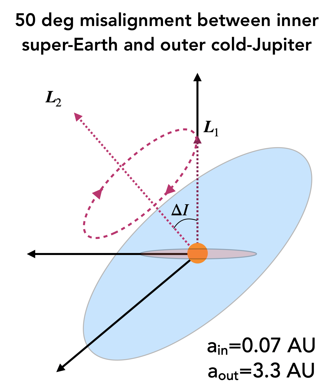 Xuan, J.W. & Wyatt, M.C. (2020) Evidence for a high mutual inclination between the cold Jupiter and transiting super Earth orbiting π Men. MNRAS, 497, 2096